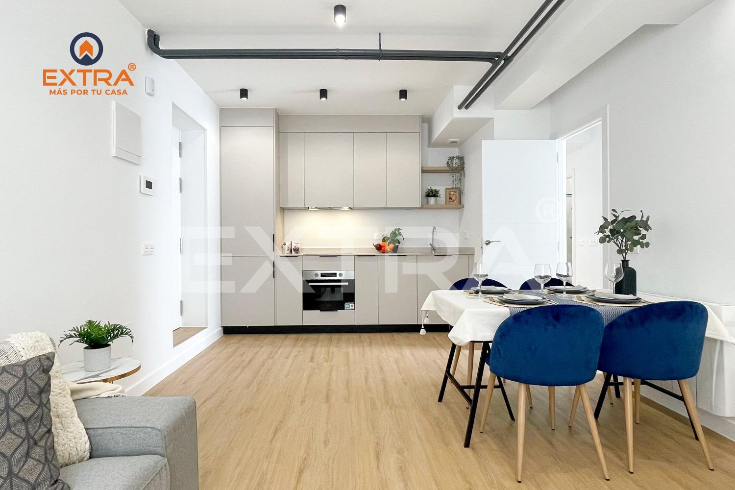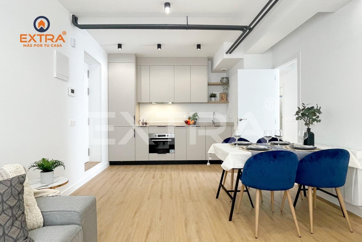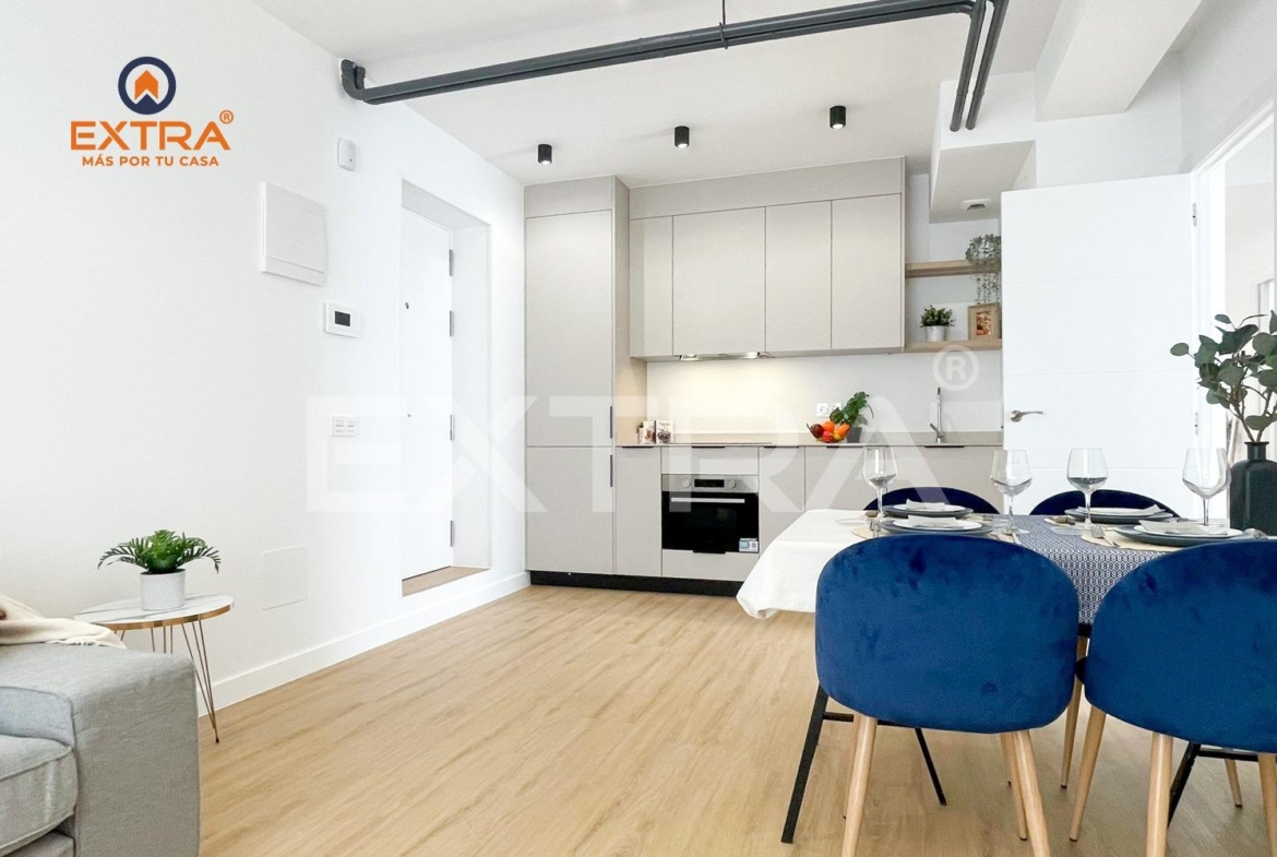Este inmueble está constituido por dos fantásticos dormitorios, destacando por la distribución uno de ellos como dormitorio principal, un baño totalmente equipado y una cocina de estilo industrial abierta al salón.