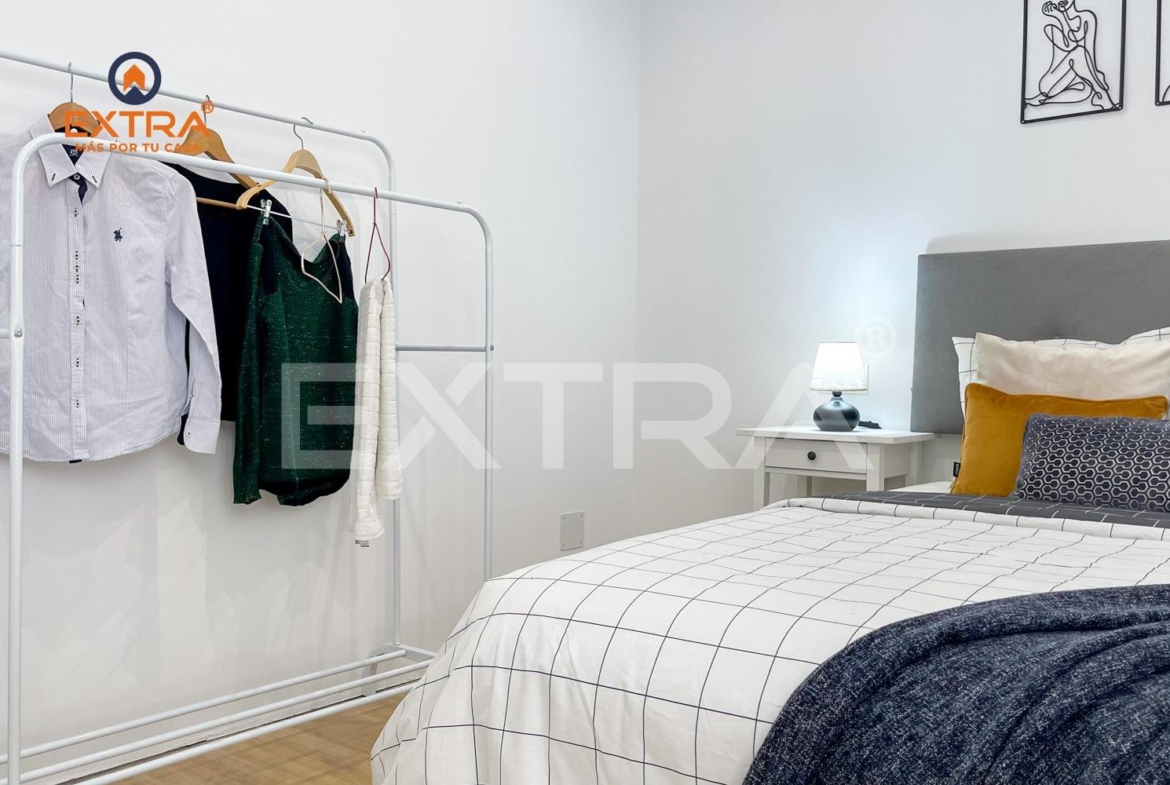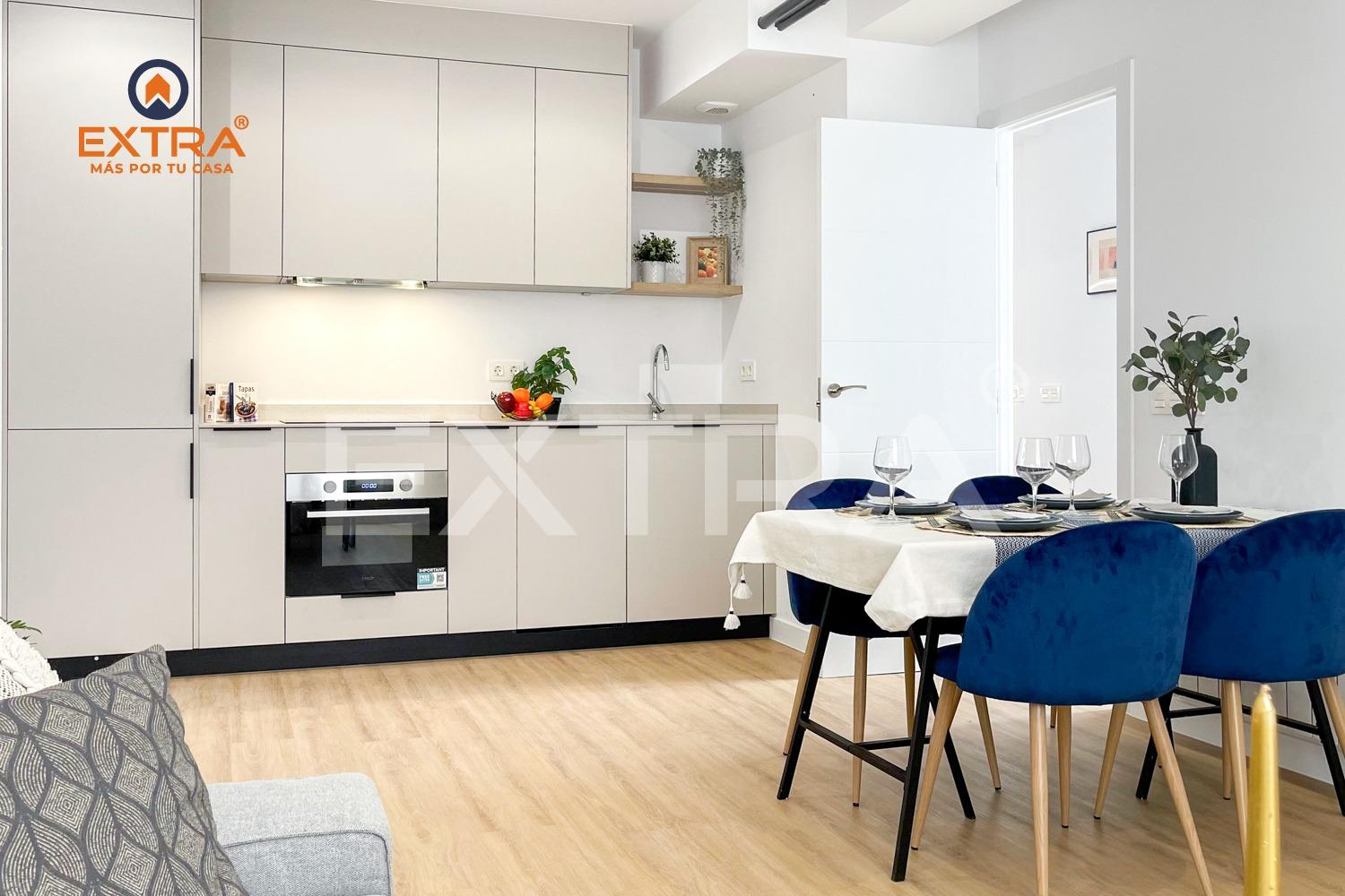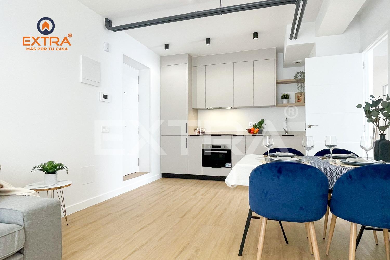 Este inmueble está constituido por dos fantásticos dormitorios, destacando por la distribución uno de ellos como dormitorio principal, un baño totalmente equipado y una cocina de estilo industrial abierta al salón.