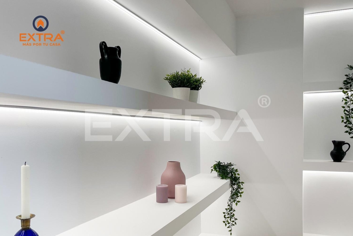 La casa destaca por su excelente iluminación artificial, cuidadosamente diseñada para resaltar cada rincón con calidez y eficiencia. Bombillas LED de alta calidad han sido estratégicamente distribuidas por toda la vivienda, aportando una luz clara y uniforme que realza los colores y texturas de los materiales.