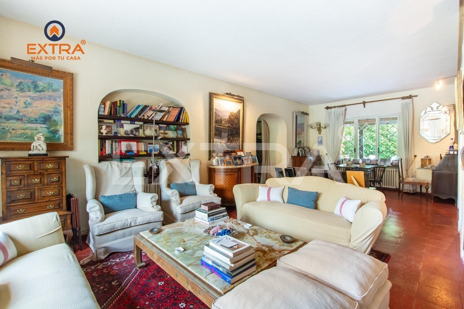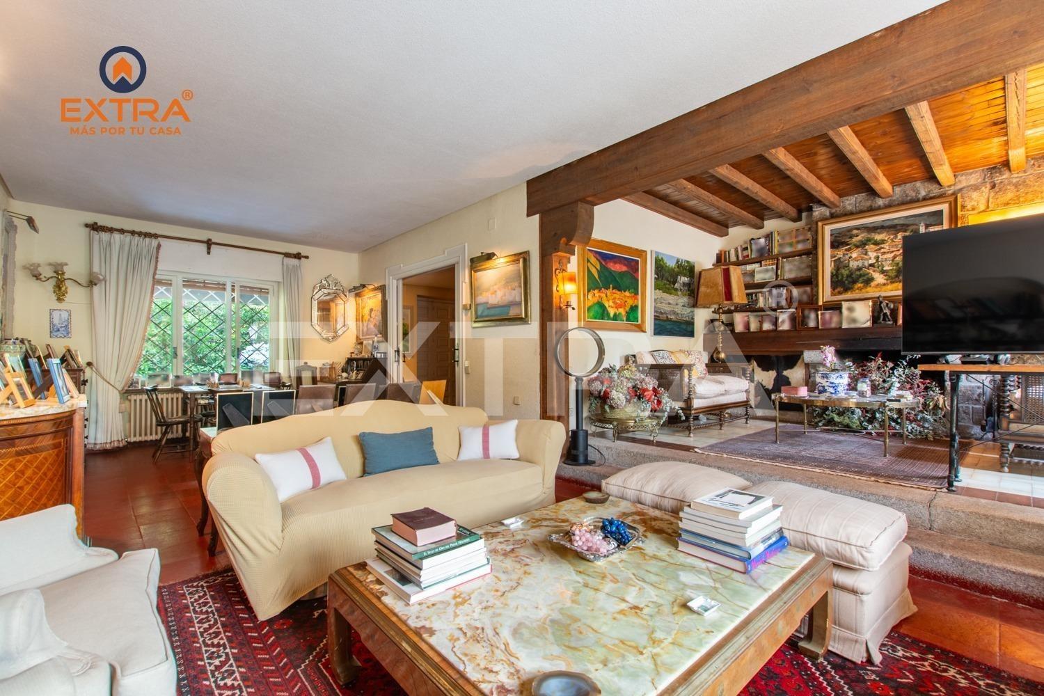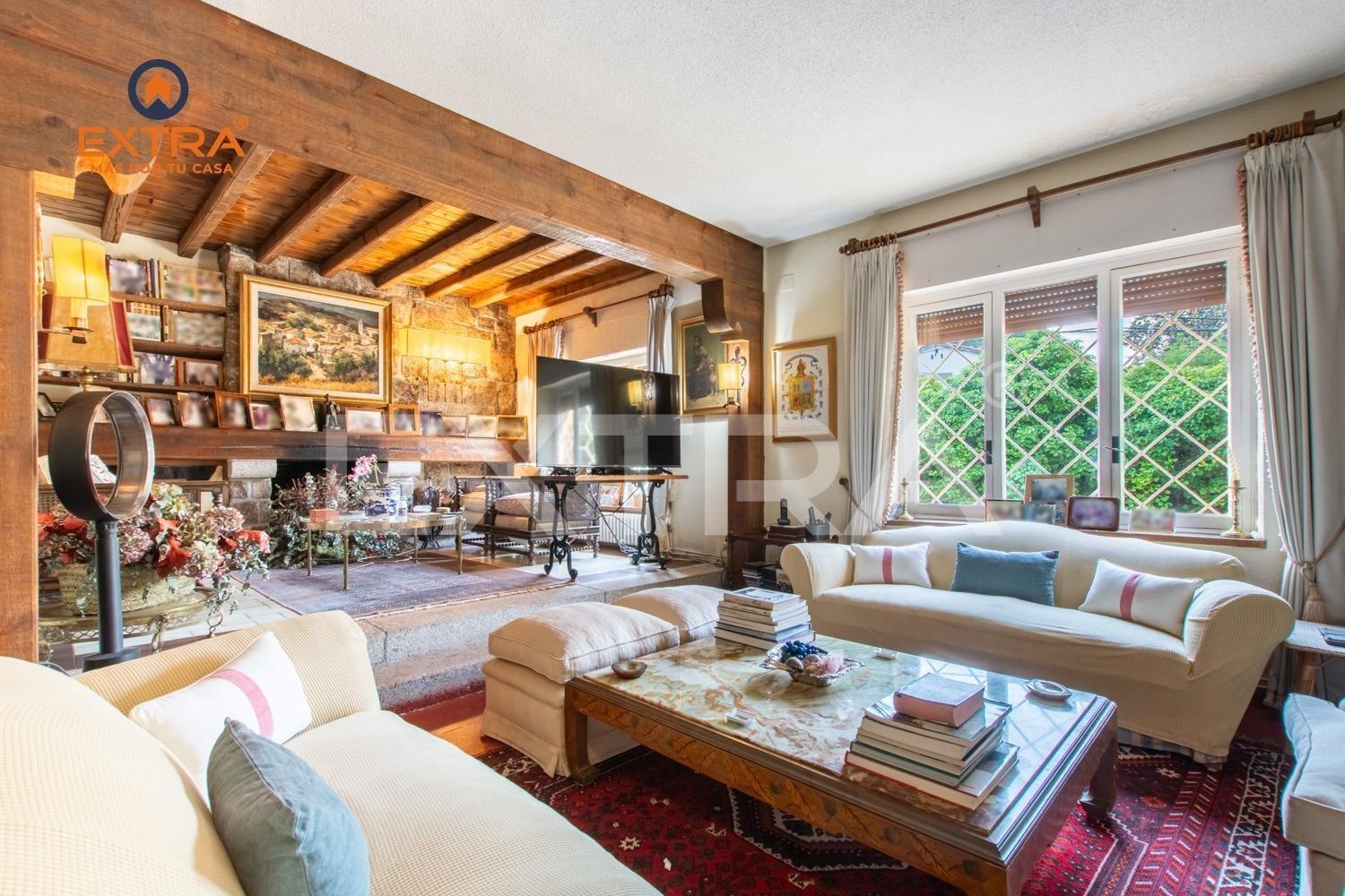 Grupo EXTRA vende chalet tipo palacete de 1.739 m2 de parcela, ubicado en el exclusivo barrio de Las Marías, una zona privilegiada dentro de Torrelodones, rodeado de naturaleza, pero a la vez con acceso a todos los servicios. Forma parte de un conjunto con proyecto de segregación aprobado por el Ayuntamiento.