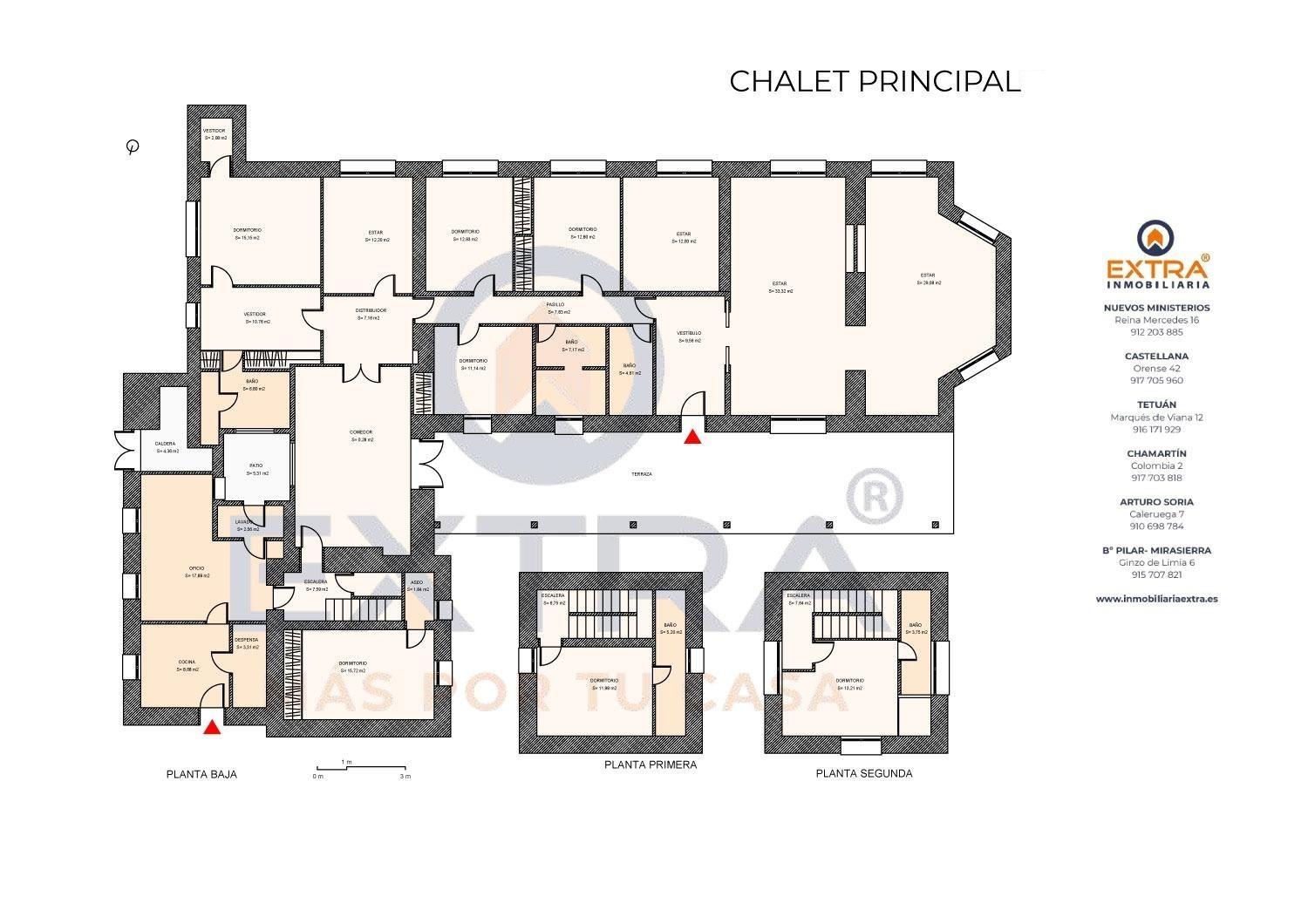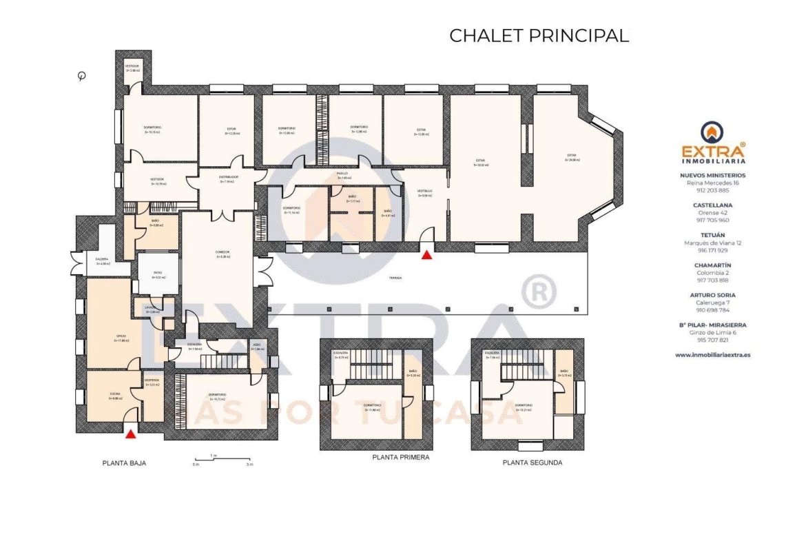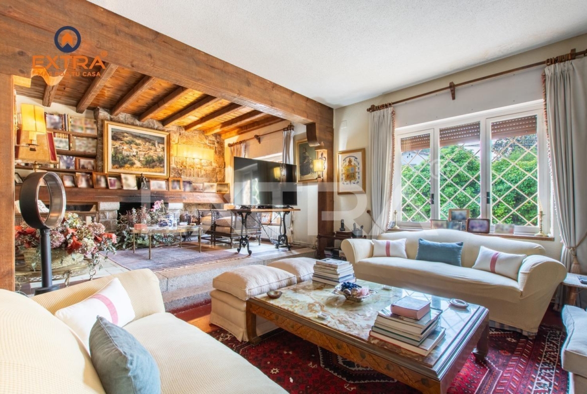 Grupo EXTRA vende chalet tipo palacete de 1.739 m2 de parcela, ubicado en el exclusivo barrio de Las Marías, una zona privilegiada dentro de Torrelodones, rodeado de naturaleza, pero a la vez con acceso a todos los servicios. Forma parte de un conjunto con proyecto de segregación aprobado por el Ayuntamiento.