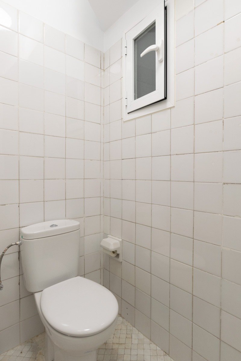 La oficina se distribuye en una amplia sala de 35 m2 con un gran ventanal sobre un patio de manzana y un amplio aseo con ventilación a un patinillo. Sin amueblar con espacio para 4-5 puestos de trabajo.