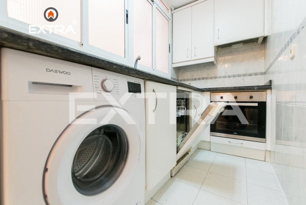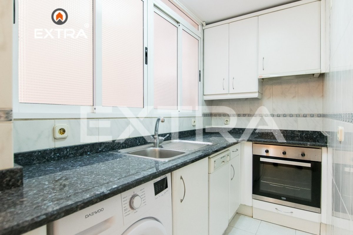 Grupo EXTRA alquila piso exterior de 2 amplios dormitorios con armarios, 1 baño completo, salón con terraza acristalada, cocina independiente totalmente equipada con nevera, lavadora, lavavajillas, horno empotrado, y vitrocerámica. Cuenta con calefacción central incluida.
