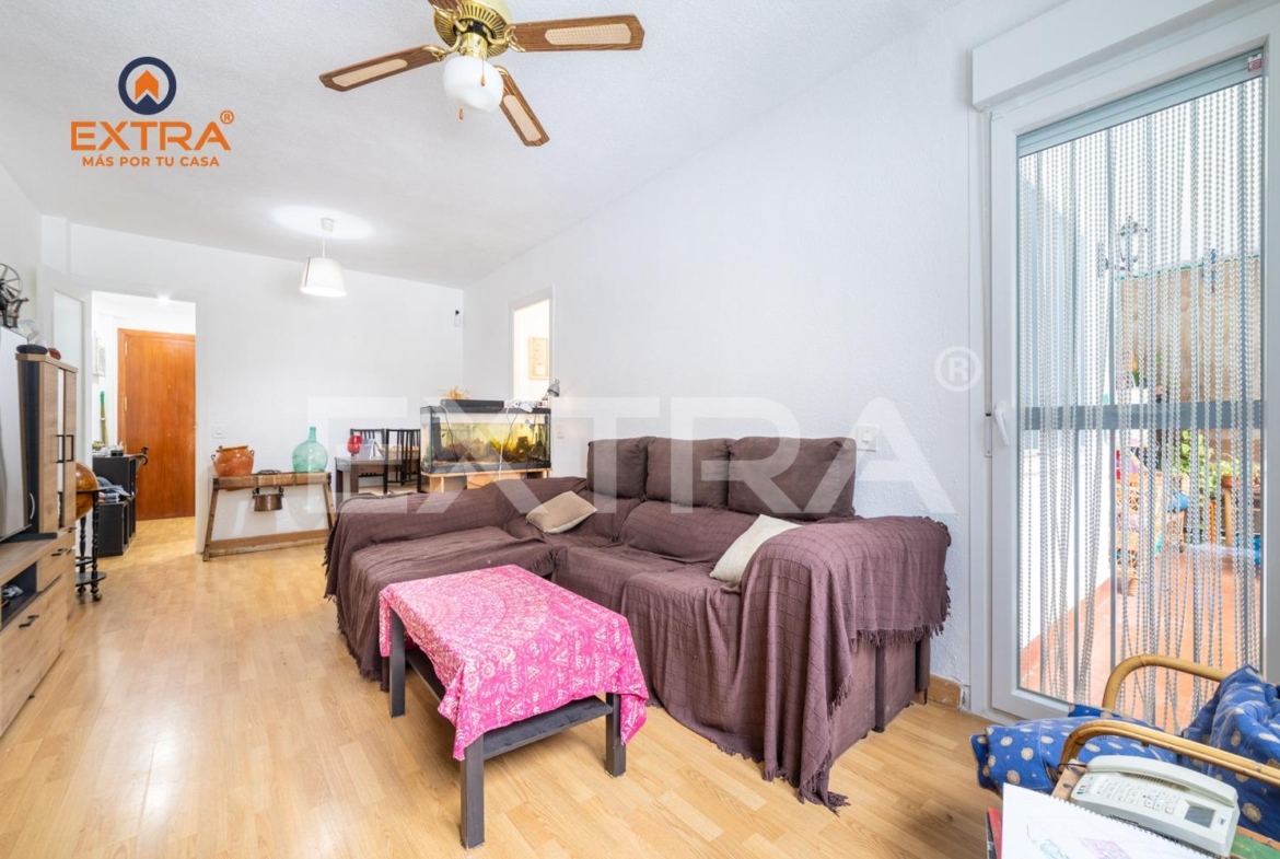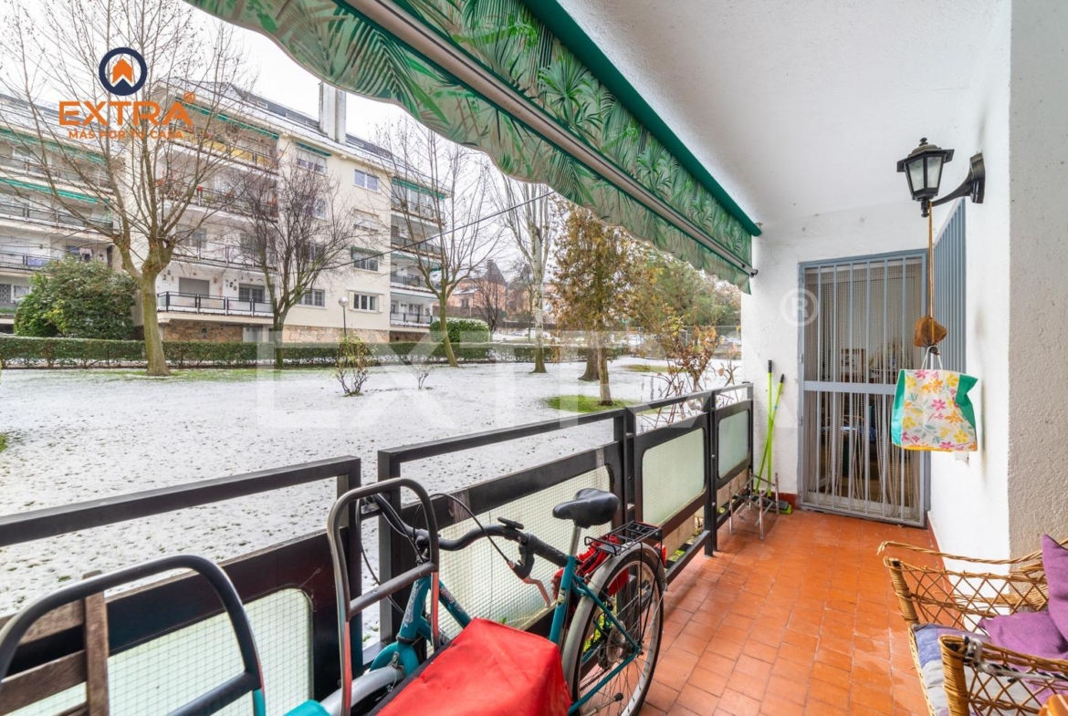 Grupo Extra ofrece piso de 94m2, con dos trasteros. Se trata de una plata baja de 3 dormitorios, 1 baño, cocina recién reformada con tendedero y totalmente equipada, salón comedor con chimenea y terraza, la cual da a una zona verde de las zona comunes; para entrar a vivir, en una urbanización privada con todos los servicios: piscina semiolímpica, pista de tenis, pista de pádel, zonas verdes para niños, junto a un campo de fútbol y de baloncesto, farmacia, tienda de alimentación y restaurante. La distribución es la siguiente: Entrando al hall, tenemos acceso a la cocina, con tendedero recién reformada y totalmente equipada, de frente salón comedor con chimenea, gran ventanal y amplia terraza, con vistas despejadas a zona verde de la comunidad, desde salón accedemos a pequeño distribuidor para los 3 dormitorios y baño completo.