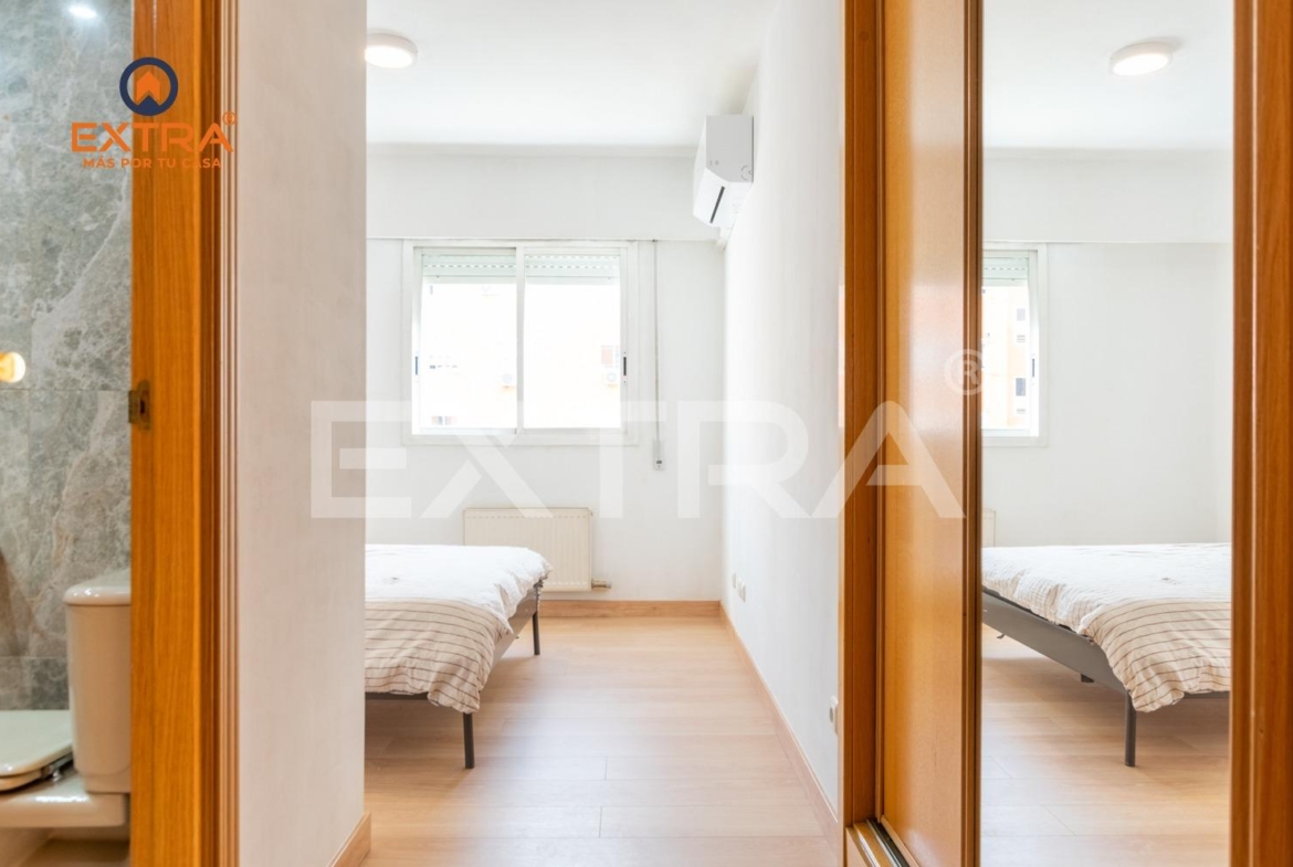 Grupo EXTRA presenta esta vivienda de 123 m² construidos, compuesta por 3 dormitorios, dos de ellos dobles, todos con armarios empotrados. Dispone de un amplio salón-comedor, cocina independiente totalmente amueblada y dos baños completos.