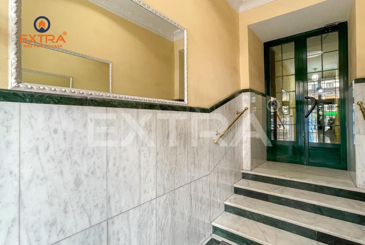 El piso está en la primera planta de un edificio con ascensor, conserje y garaje, es exterior con techos altos, muy luminoso, orientación sur. Se distribuye en hall, 3 dormitorios, salón, cocina independiente con completamente equipada: nevera, lavavajillas, campana extractora, horno, microondas.