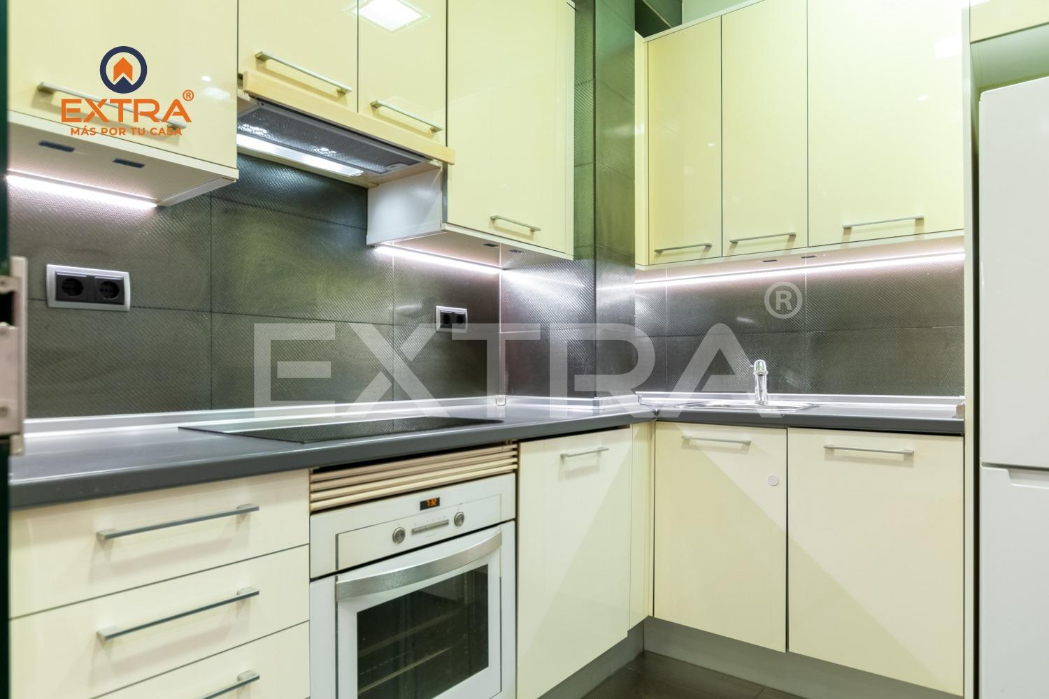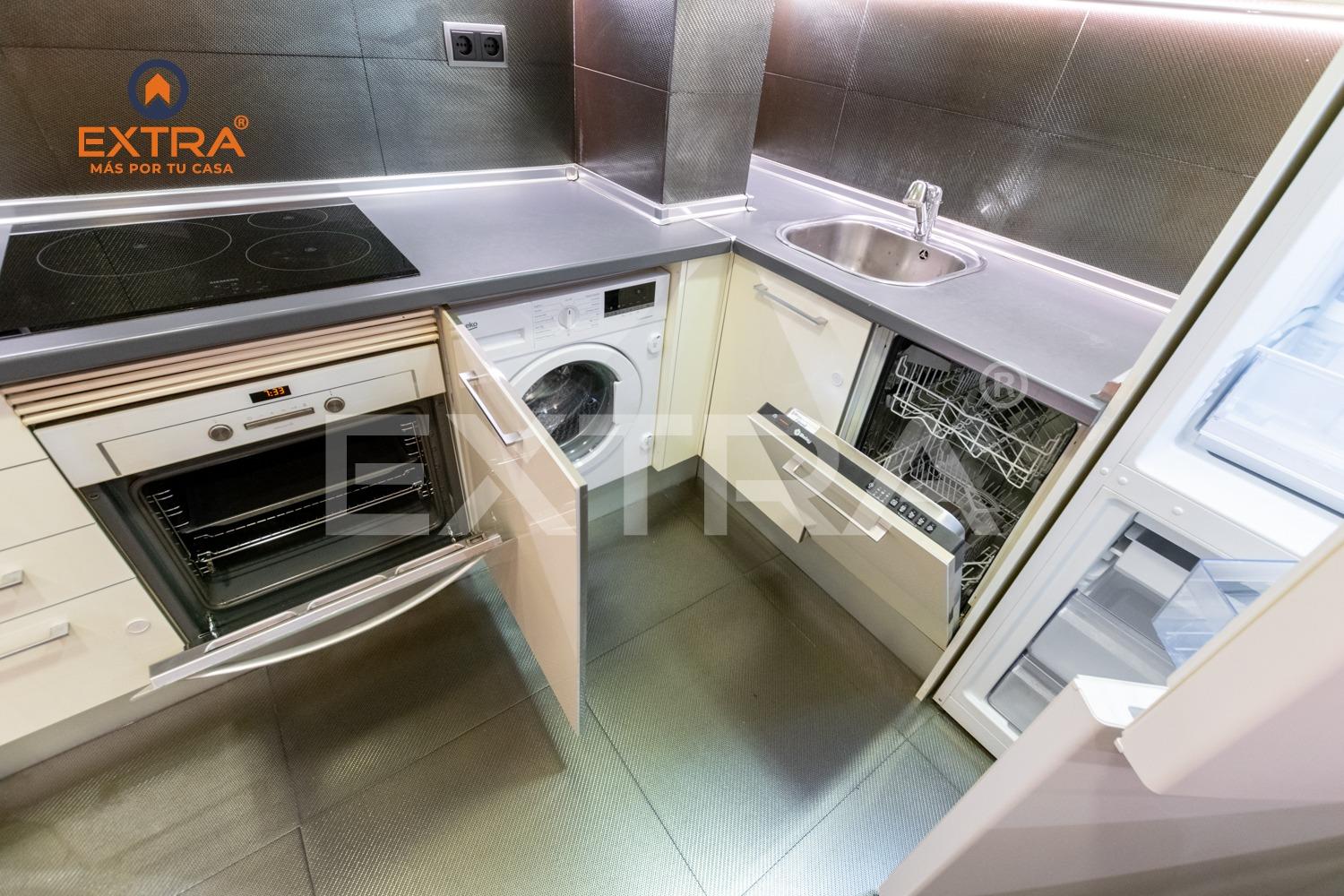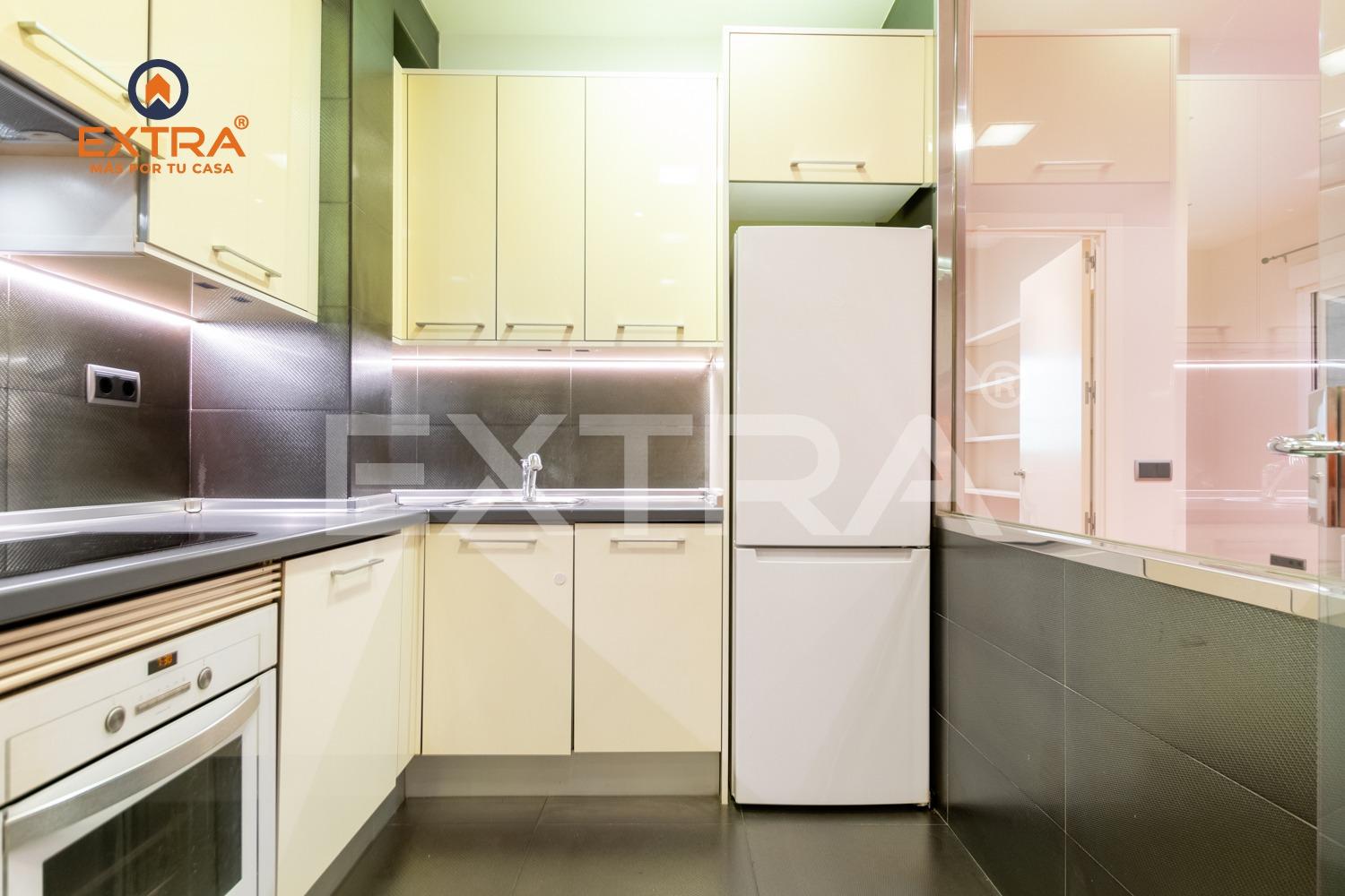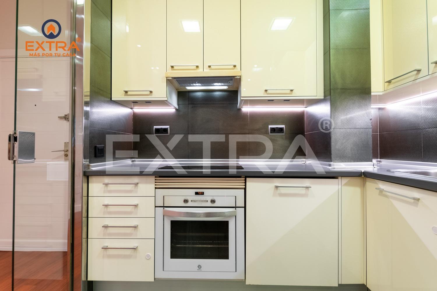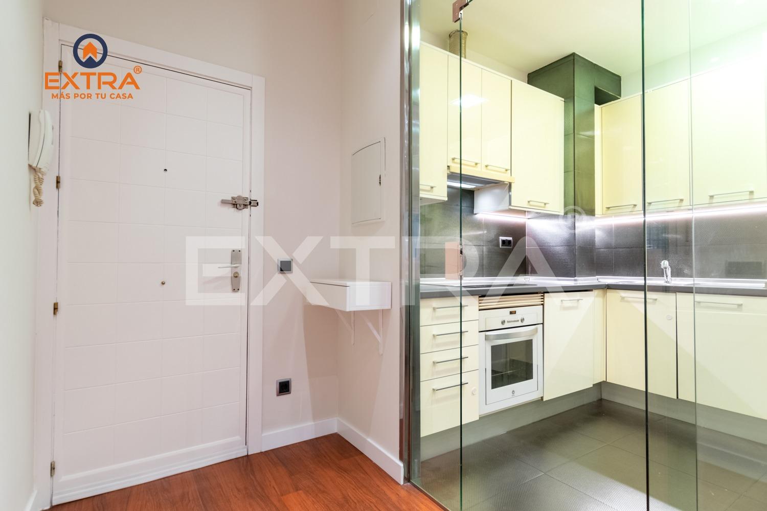 Al entrar, un acogedor hall da la bienvenida y conduce a la cocina, totalmente amueblada y equipada con vitrocerámica, horno y frigorífico. Una elegante mampara de cristal la separa del salón, aportando amplitud y luminosidad al conjunto.