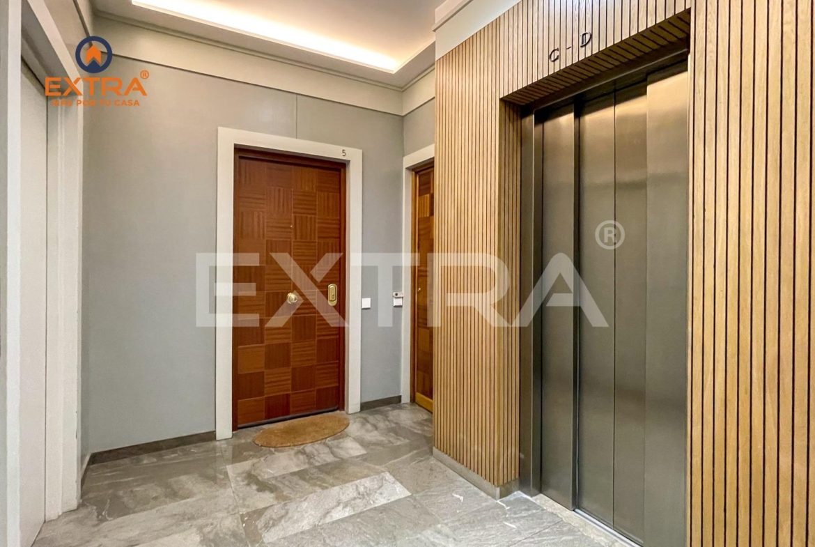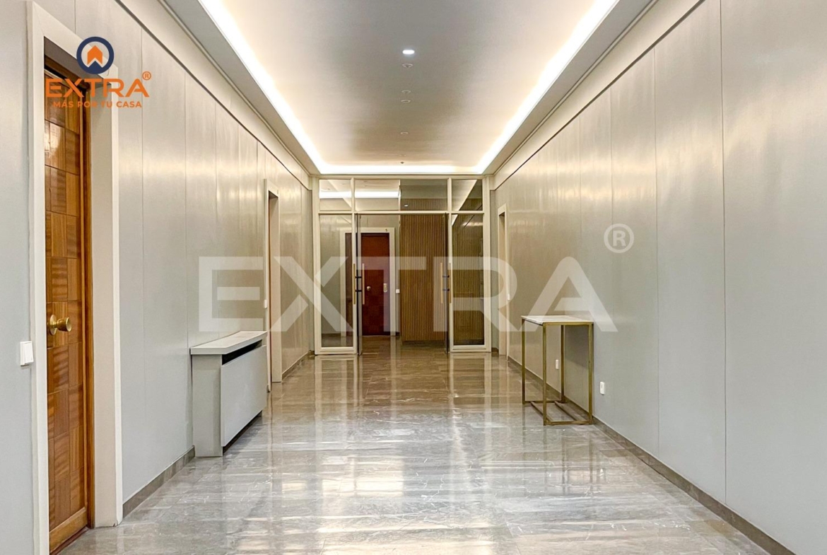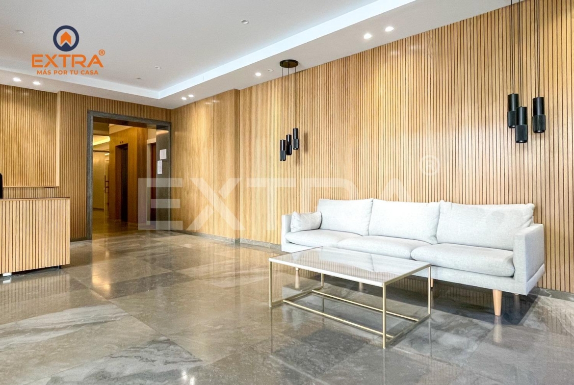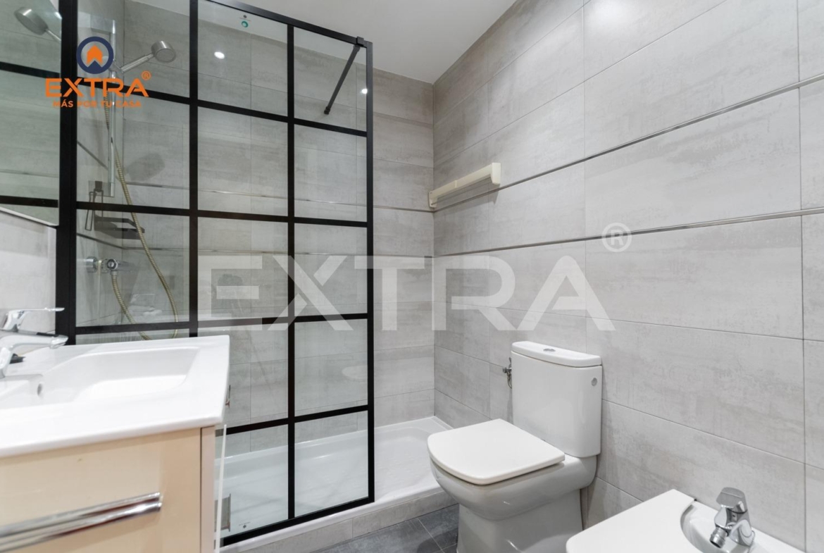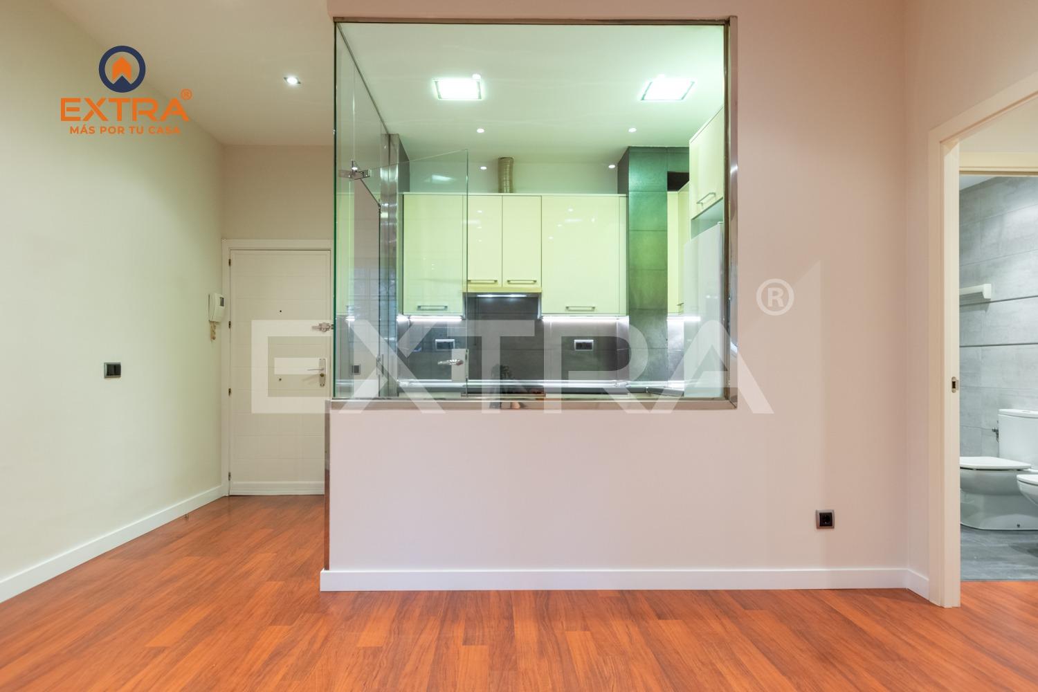 Al entrar, un acogedor hall da la bienvenida y conduce a la cocina, totalmente amueblada y equipada con vitrocerámica, horno y frigorífico. Una elegante mampara de cristal la separa del salón, aportando amplitud y luminosidad al conjunto.