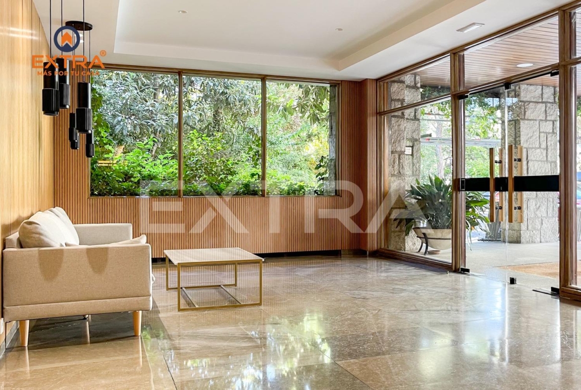 Situado en una planta baja que tiende a semi-sótano, no llega a serlo gracias a sus grandes ventanales, que llenan las estancias de luz natural y ofrecen vistas directas al jardín y la piscina, creando una conexión única con el entorno verde, una buena calidad del aire y máxima intimidad por ser un jardín privado.