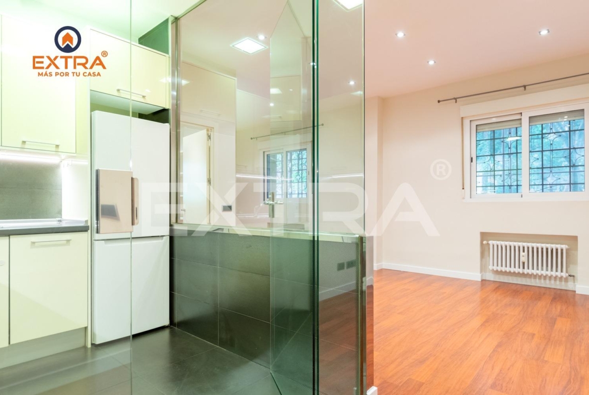 EXTRA Madrid les brinda piso ubicado en Valdezarza – Ciudad Universitaria, en zona residencial cerrada con piscina. Compuesto de salón comedor, cocina independiente, baño y habitación doble con vestidor, es ideal para una pareja e incluso para un single independiente que busquen un ambiente tranquilo.