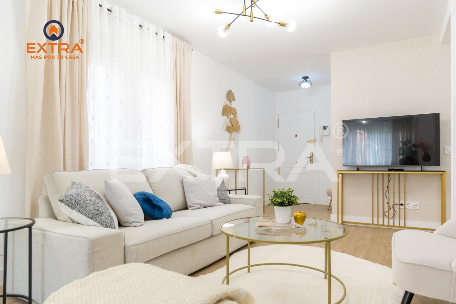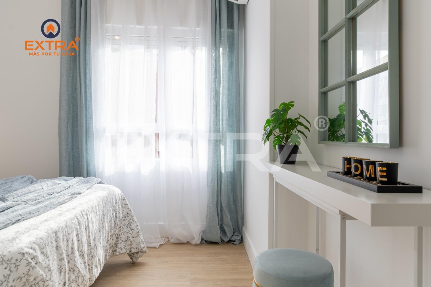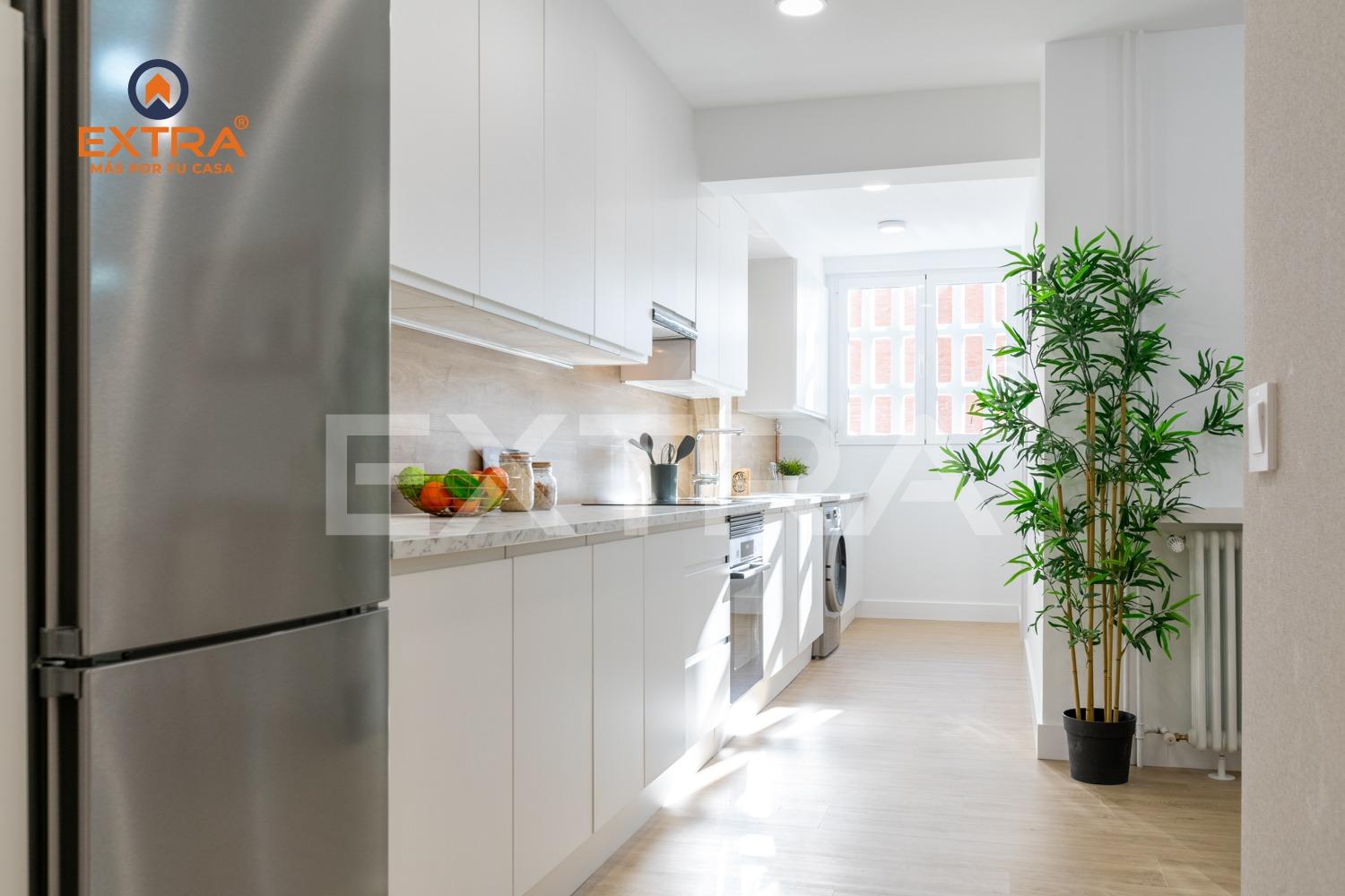Grupo EXTRA les brinda exclusivo piso reformado, con terraza integrada y plaza de garaje en edificio próximo. Ubicado junto al metro Esperanza, la vivienda dispone de hall de entrada, amplio salón-comedor con acceso a la terraza incorporada, tres generosos dormitorios, dos baños completos y cocina semi integrada al salón.